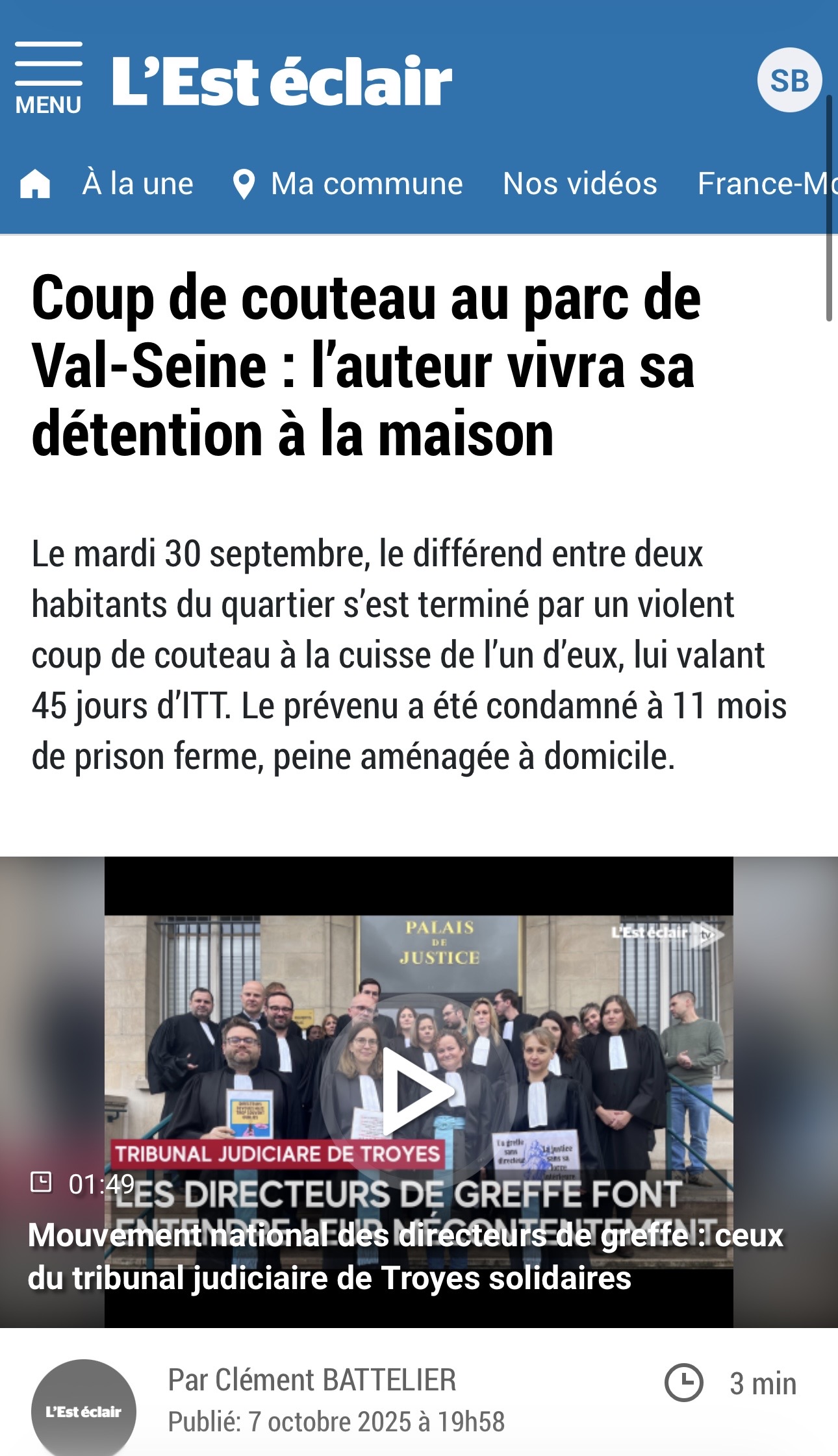 S’il ne reconnaît pas le motif avancé de la brouille – autour de pots de tabac -, le prévenu, en situation irrégulière depuis 2016 et son arrivée en France, a expliqué dernièrement devant le Tribunal correctionnel de Troyes avoir répondu à une attaque. « Je savais qu’il avait déjà frappé quelqu’un d’autre du quartier avec des boules de pétanque. Il a essayé sur moi, j’ai dû éviter son coup ». Et, en effet, son opposant a été condamné par le passé pour des faits de violence sur autrui.